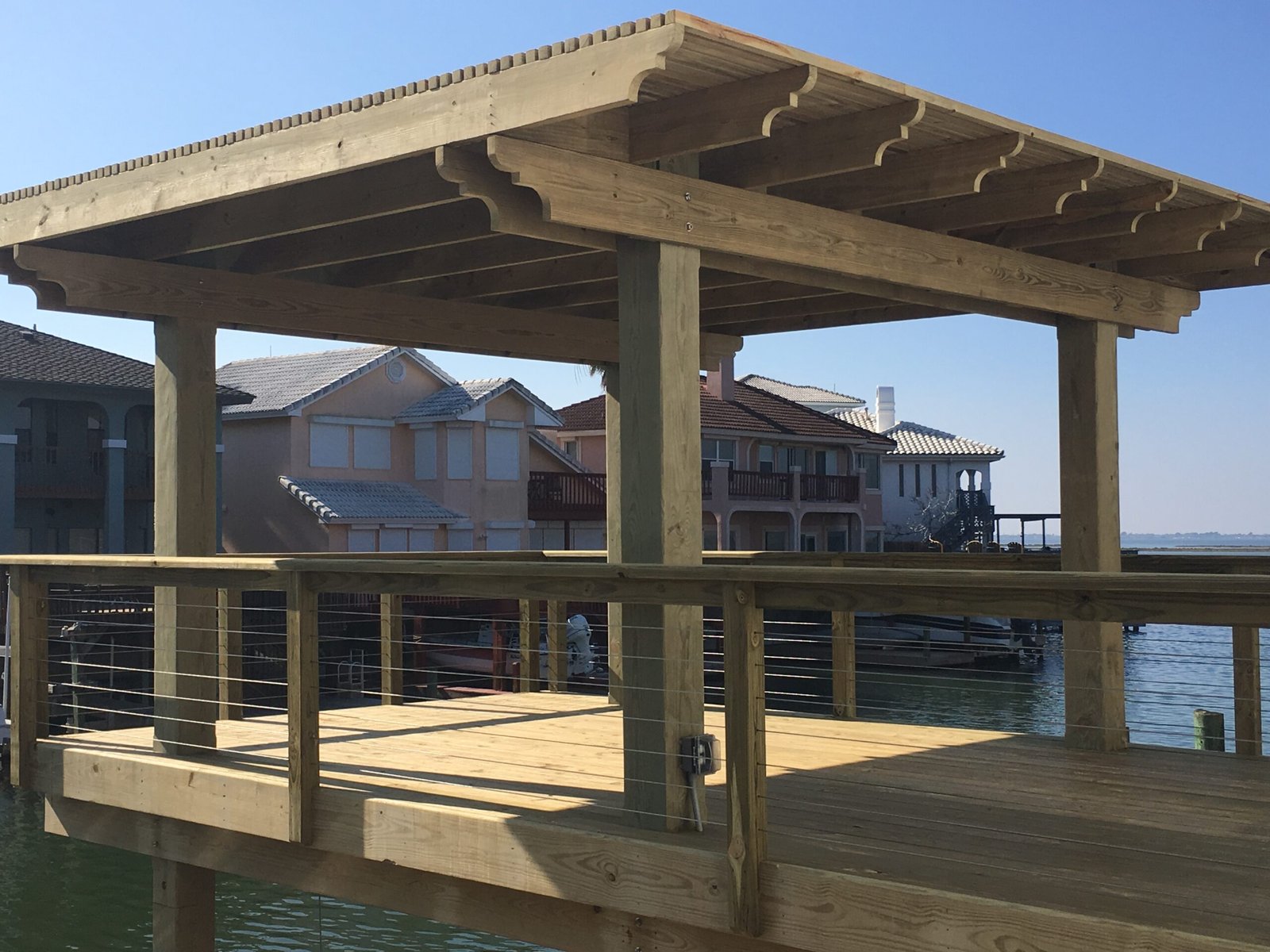 Custom Designed 2 Story Dock with Lights and sling boat lift. Approximately 27 Pilings and 450 square feet of decking installed. Turnkey build including drawings, engineer stamp, and permitting.